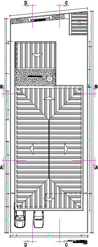 The roof layout of the 8x22m house plan is given in this file. The roof covering details are given. For more details download the AutoCAD drawing file from our website.