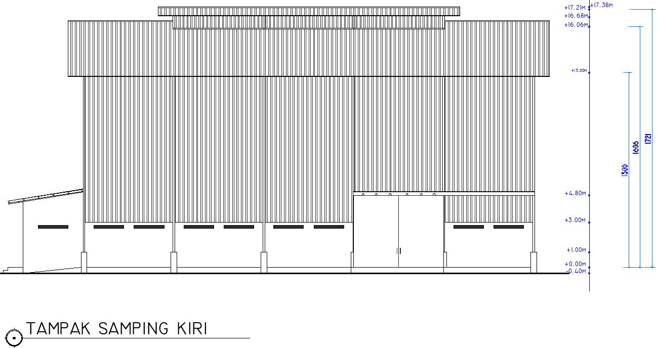 The left side elevation view of the 18x12m ware house building CAD drawing is given in this file. This is single story warehouse building. The height of the warehouse is 8.27m. For more details download the AutoCAD drawing file from our website.