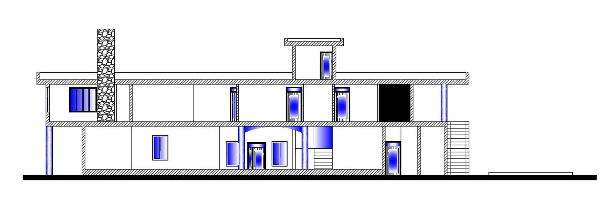 The front section view of the 40x22m luxury villa building is given in this AutoCAD model. This is two story house building. On this ground floor, the living room, car parking, ware room, kitchen, dining room, master bedroom with the attached toilet, and common bathrooms are available. On this first floor, the living room, guest room, kid’s room, master bedroom with the attached toilet, patio, and common bathrooms are available. For more details download the AutoCAD drawing file from our cadbull website.