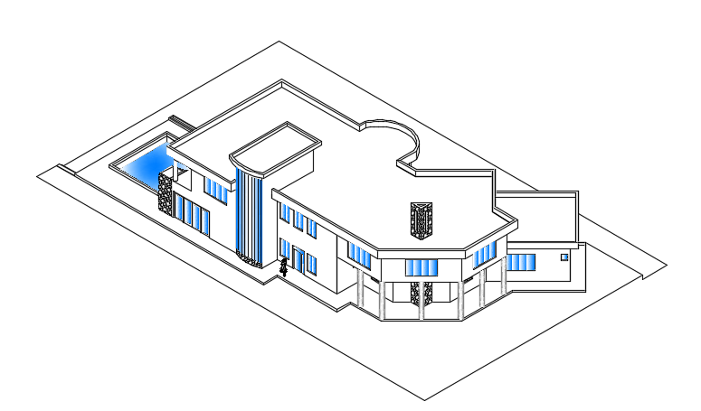 An isometric view of the 40x22m luxury villa building is given in this AutoCAD model. This is two story house building. On this ground floor, the living room, car parking, ware room, kitchen, dining room, master bedroom with the attached toilet, and common bathrooms are available. On this first floor, the living room, guest room, kid’s room, master bedroom with the attached toilet, patio, and common bathrooms are available. For more details download the AutoCAD drawing file from our cadbull website.