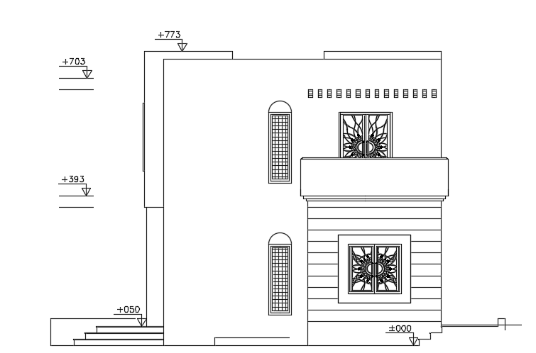 The left side elevation view of the 13x15m house building CAD model is given in this file. The garden is provided around the house. This is two story house building. On this ground floor, the living room, kitchen, dining room, and common bathroom is available. On this first floor, the master bedroom with the attached toilet, and kid’s room with the attached toilet is available. For more details download the AutoCAD drawing file from our cadbull website.