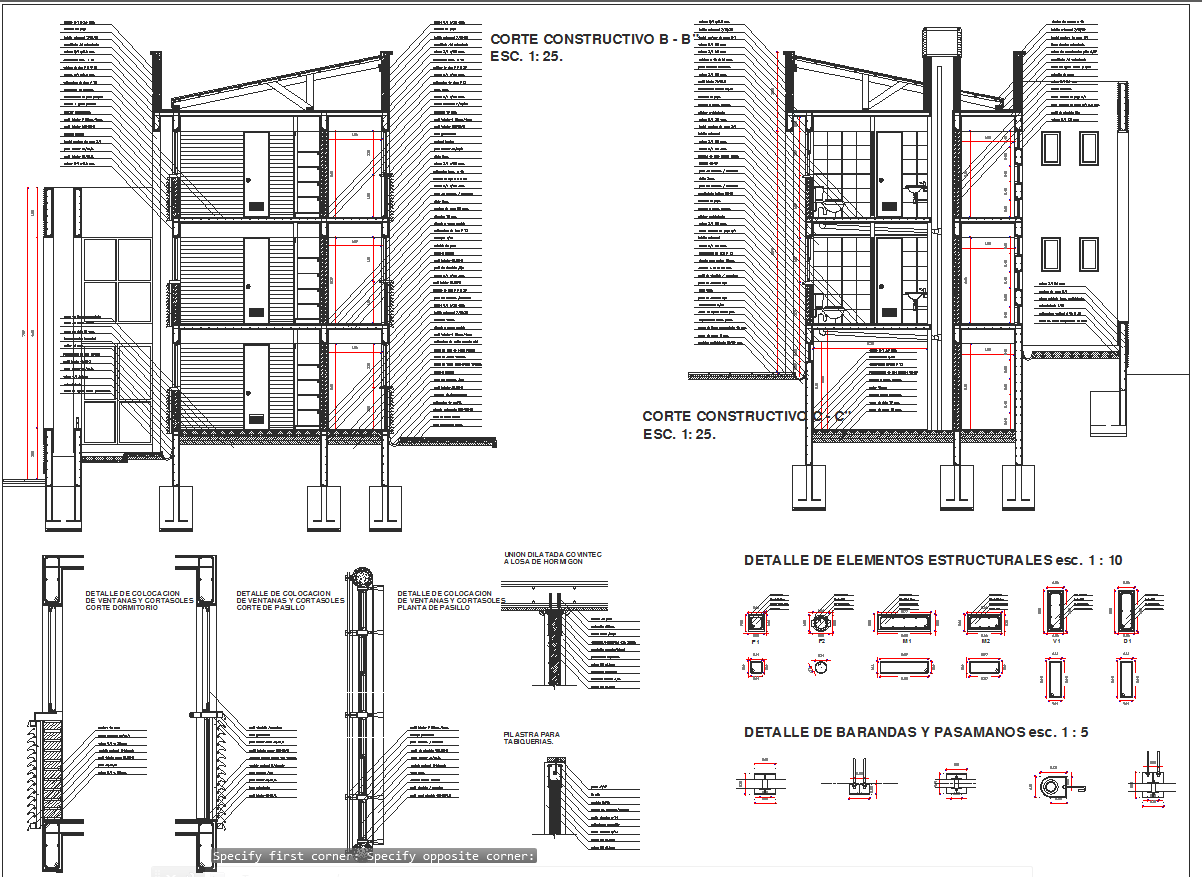 Building sections with constructions detail drawing include vertical and horizontal sections of the building.