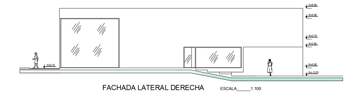 The right side elevation view of the 14x40m luxury bungalow house building is given in this file. This is G+ 1 house building. On this ground floor, kitchen, dining area, bar, maid room with the attached bathroom, swimming pool, gent’s bathroom, ladies bathroom, family area, master bedroom with the attached toilet, car parking, lavanderia, and other details are mentioned. On this first floor, the TV room, family room, music room, study room, living room, two guest room with the attached bathroom, three kid’s room with the attached bathroom, and master bedroom with the attached bathrooms are available. For more details download the AutoCAD drawing file from our cadbull website.