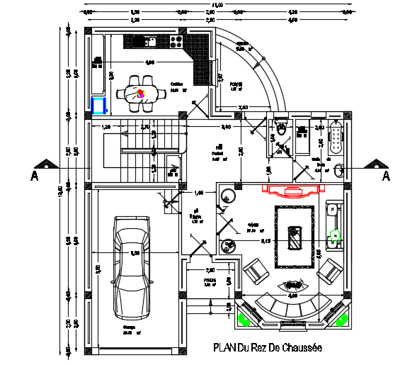 13x11m ground floor house plan AutoCAD model is given in this file. This is G+ 1 house building. On this ground floor, the car parking, living room, passage, family lounge area, kitchen, dining area, and common bathrooms are available. For more details download the AutoCAD drawing file from our cadbull website.
