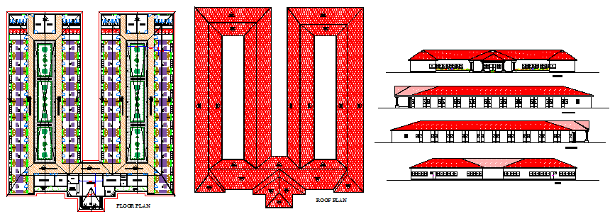 Here the Proposed layout design of 36 rooms hostel design drawing with furniture layout design,roof design drawing,elevation with modern look design drawing in this auto cad file.