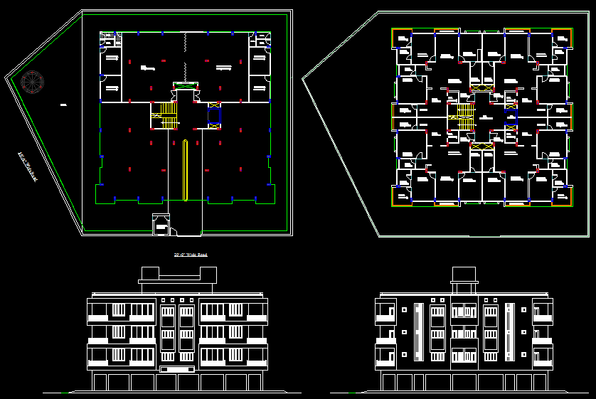 2BHK Apartment AutoCAD Design with Floor Plans and Elevation Details