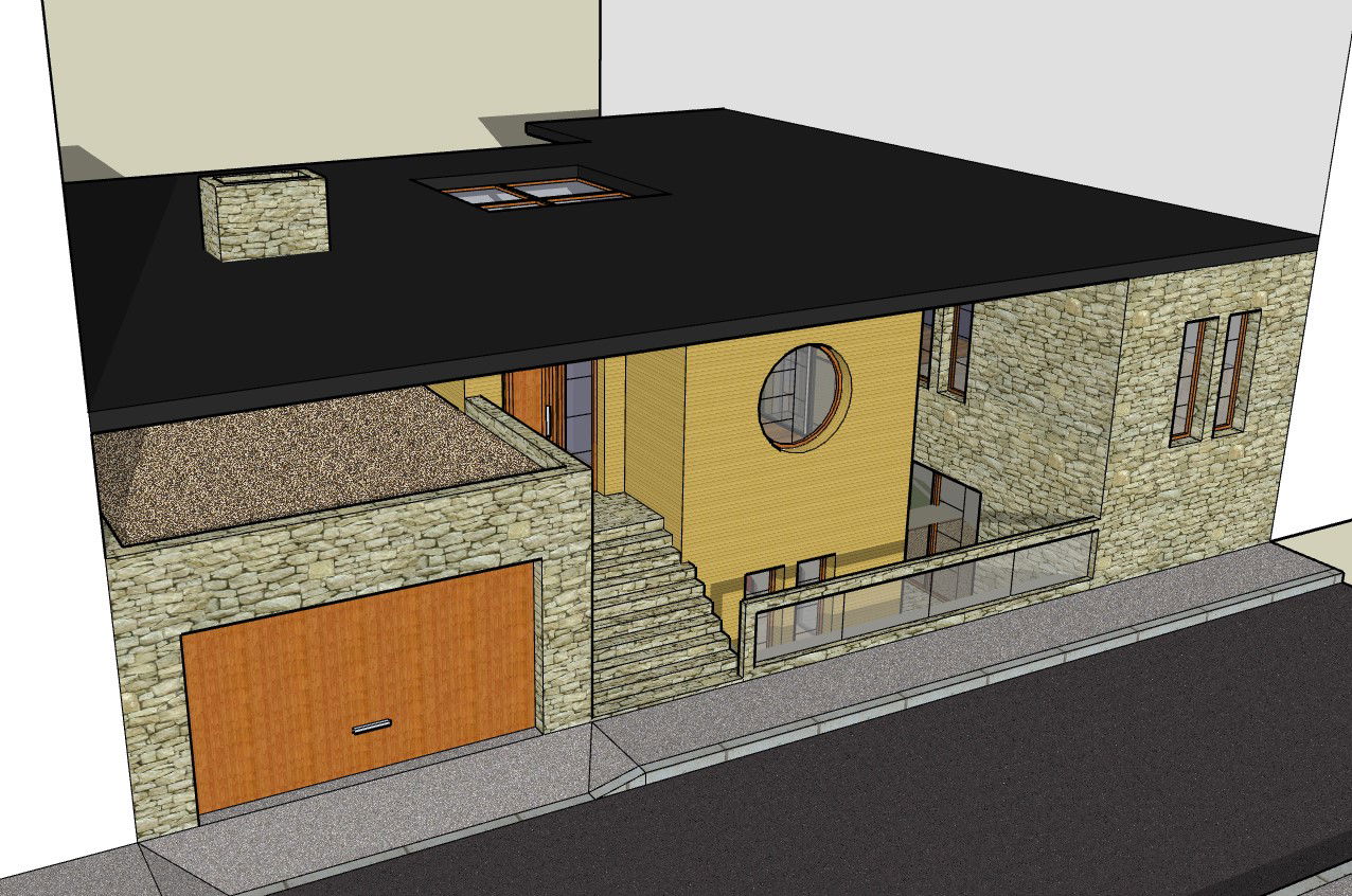 3D mansion with a personal garage, staircase, balcony, bedroom, dining room, drawing room and chimney