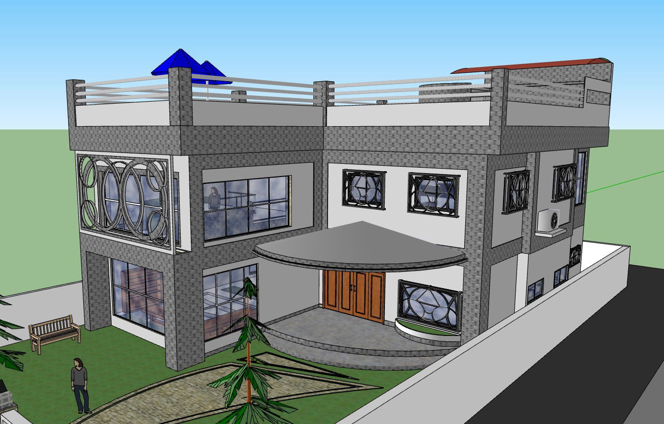 Beautiful Villa with a natural beauty around garden facing view, 3d Sketch up, House drawing