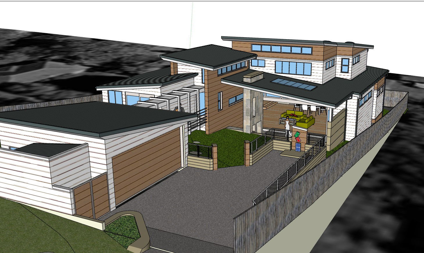 3D Modern Bungalow with garage, garden, pathway, bedroom, drawing room , dining room, kitchen, tilted roofs and interiors
