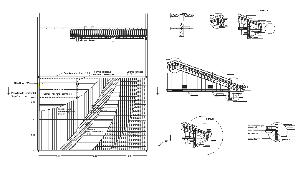 roof detail detail in plan and sectional drawing with truss and joinery details