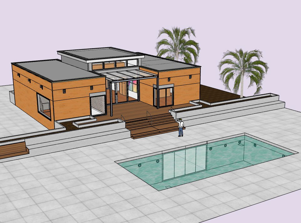 3D Modern Mansion with bedroom, swimming pool, garden, dining room, drawing room, kitchen and living room,