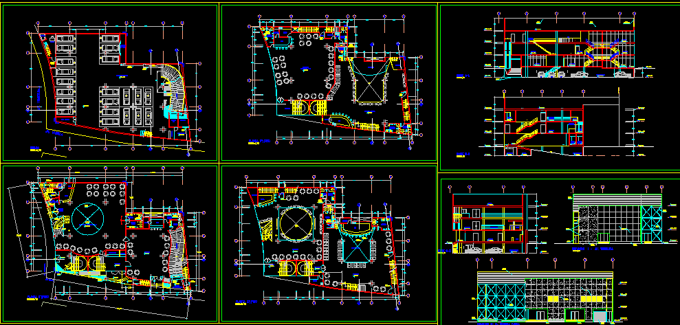 Restaurant Design AutoCAD Drawing with Plans Elevations and Sections