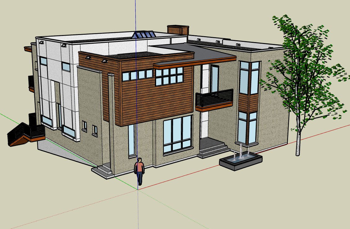 3D Duplex Villa with , car parking space, chimneys, bedroom, drawing room, dining room, kitchen, bathroom and balcony provided with each bedroom