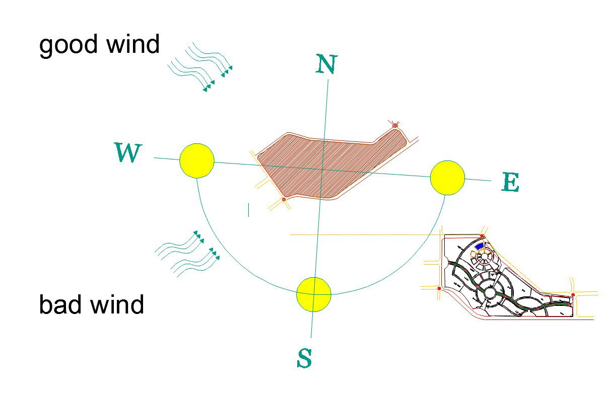 Master plan of wind directions about house architecture planning