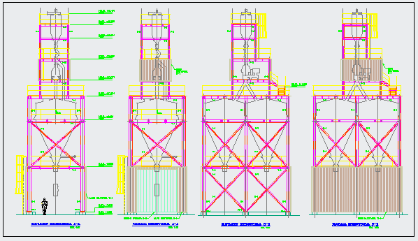 Here the Structural elevation design of Tower for trash design drawing with all detail in this auto cad file.