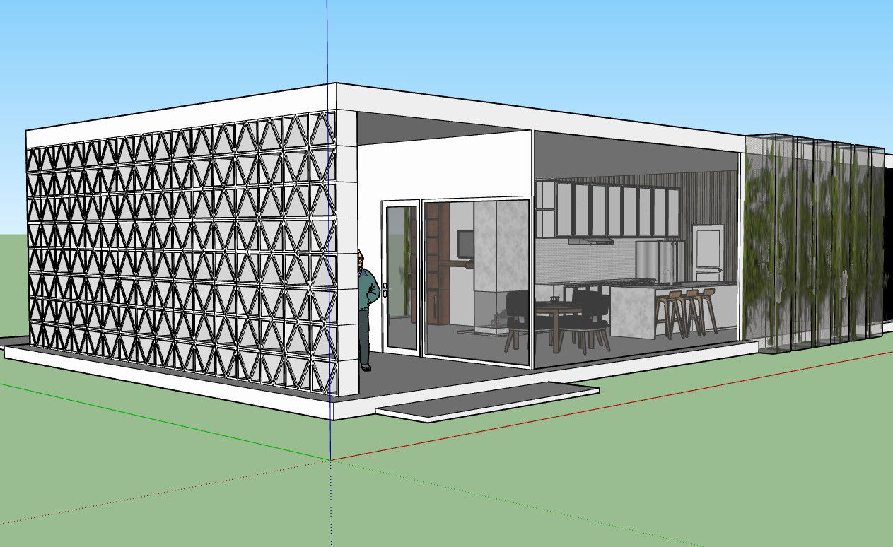 3D Glassed Compact House with bedroom, drawing room, living room, bathroom, washroom, dining room and kitchen