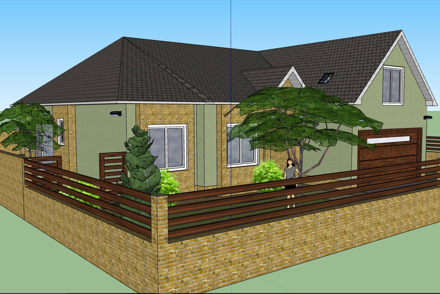 3D 3 Bedroom House with bedroom, drawing room, living room, bathroom, washroom, dining room, kitchen and car parking space.