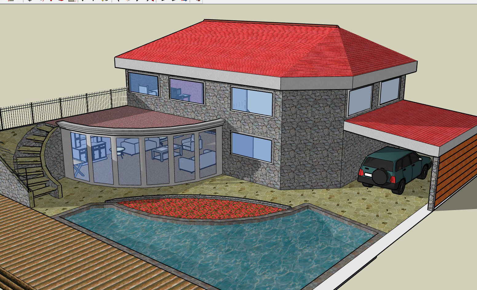 3D Bungalow with a Swimming Pool, car parking space,bedroom, drawing room, living room, bathroom, washroom, dining room, terrace, tilted roof and kitchen