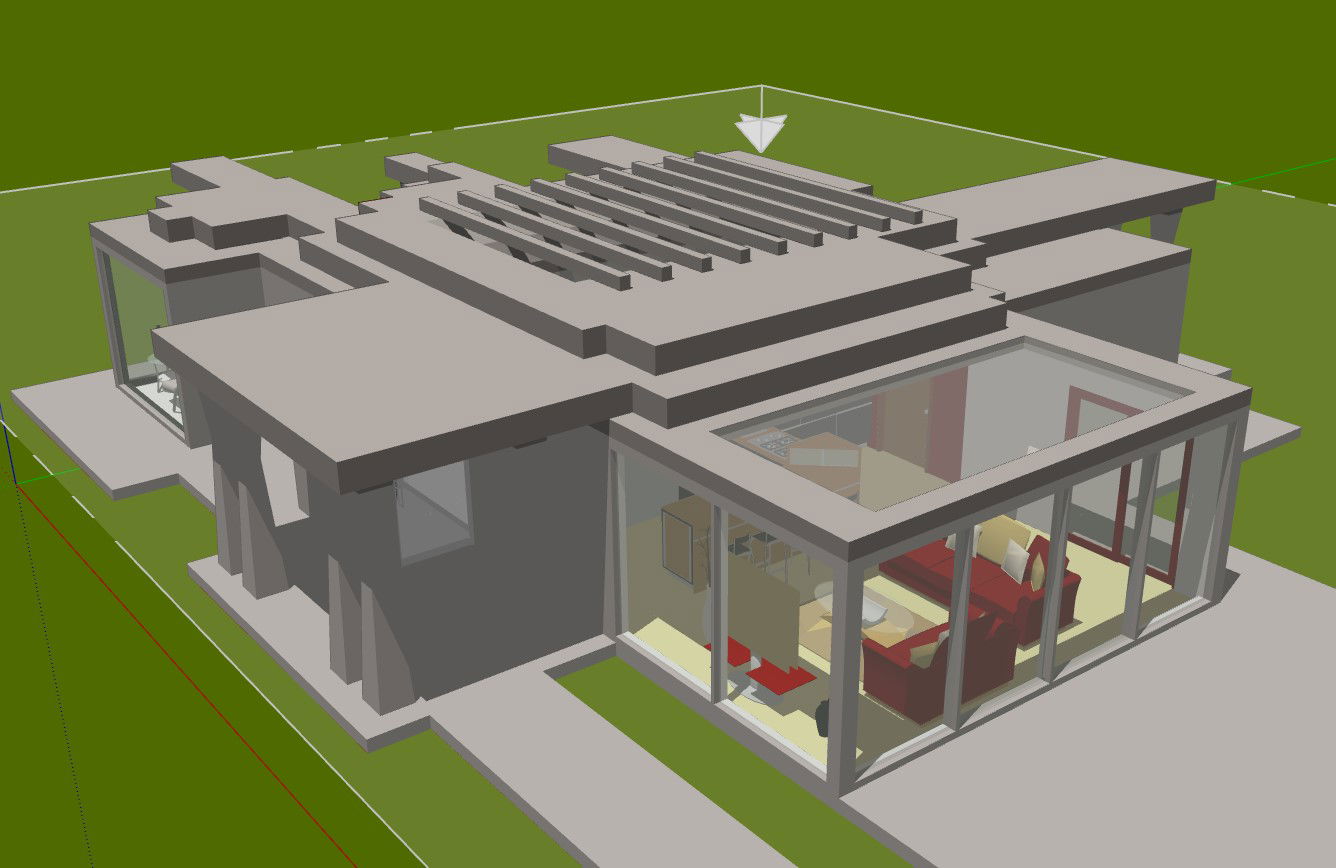 3D 2 Bedroom Glassed House with drawing room, dining room, kitchen, fall ceiling, study room, washroom, bathroom and dressing room.