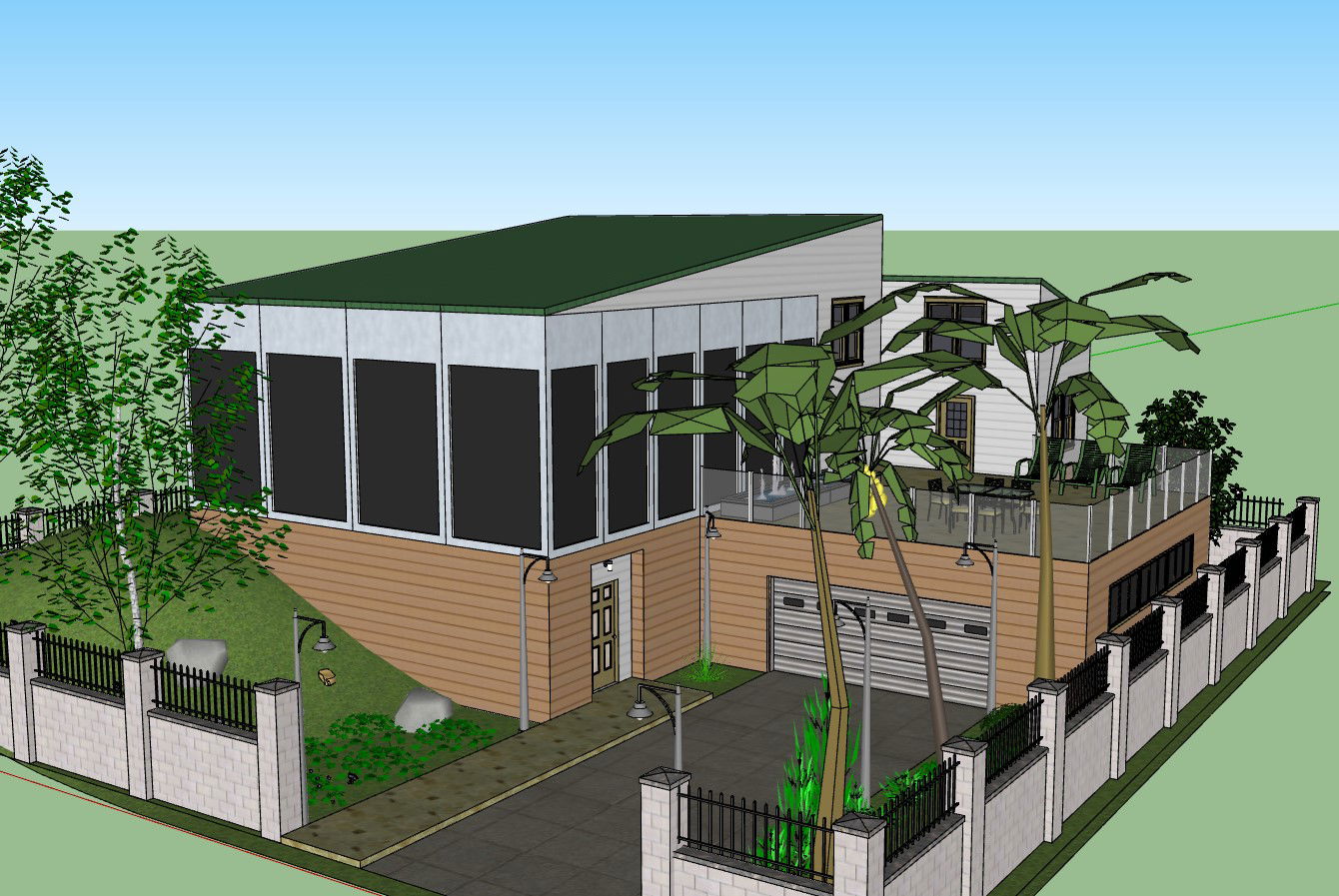 3D Tilted Roof Mansion with bedroom, drawing room, living room, bathroom, washroom, dining room, kitchen, garden, car parking space and balcony