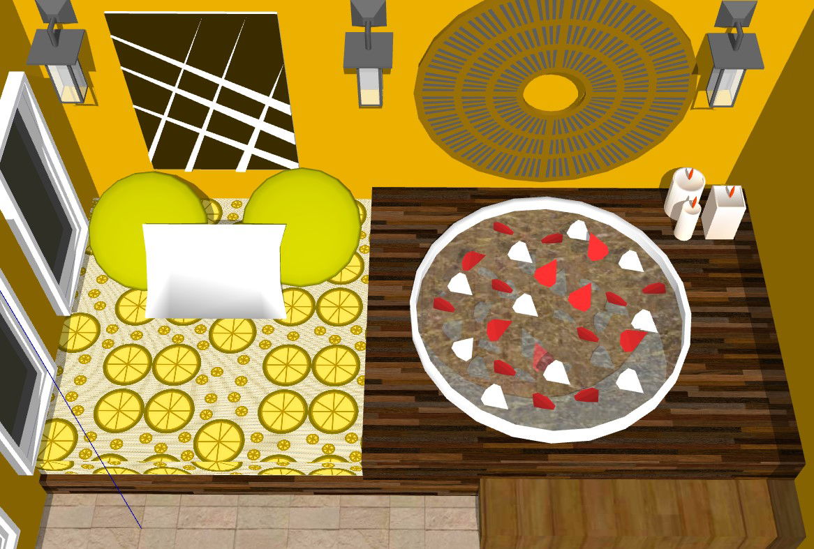 3D Interiors of a Bedroom with bed, carpet,side tables, lights and wooden flooring