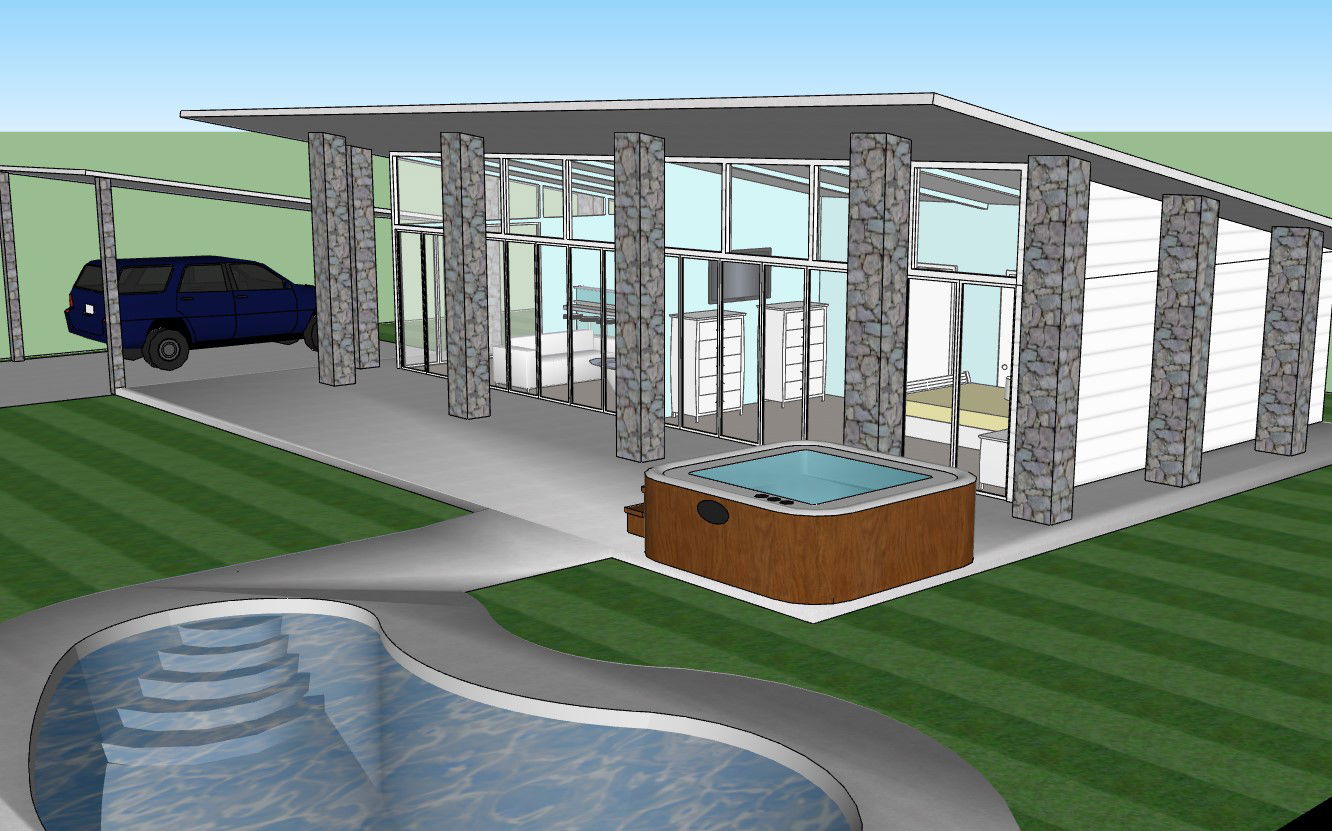 3D Villa with a Swimming Pool, bedroom, living room, kitchen, bathroom, washroom, drawing room, dining room, store room and parking space for the car