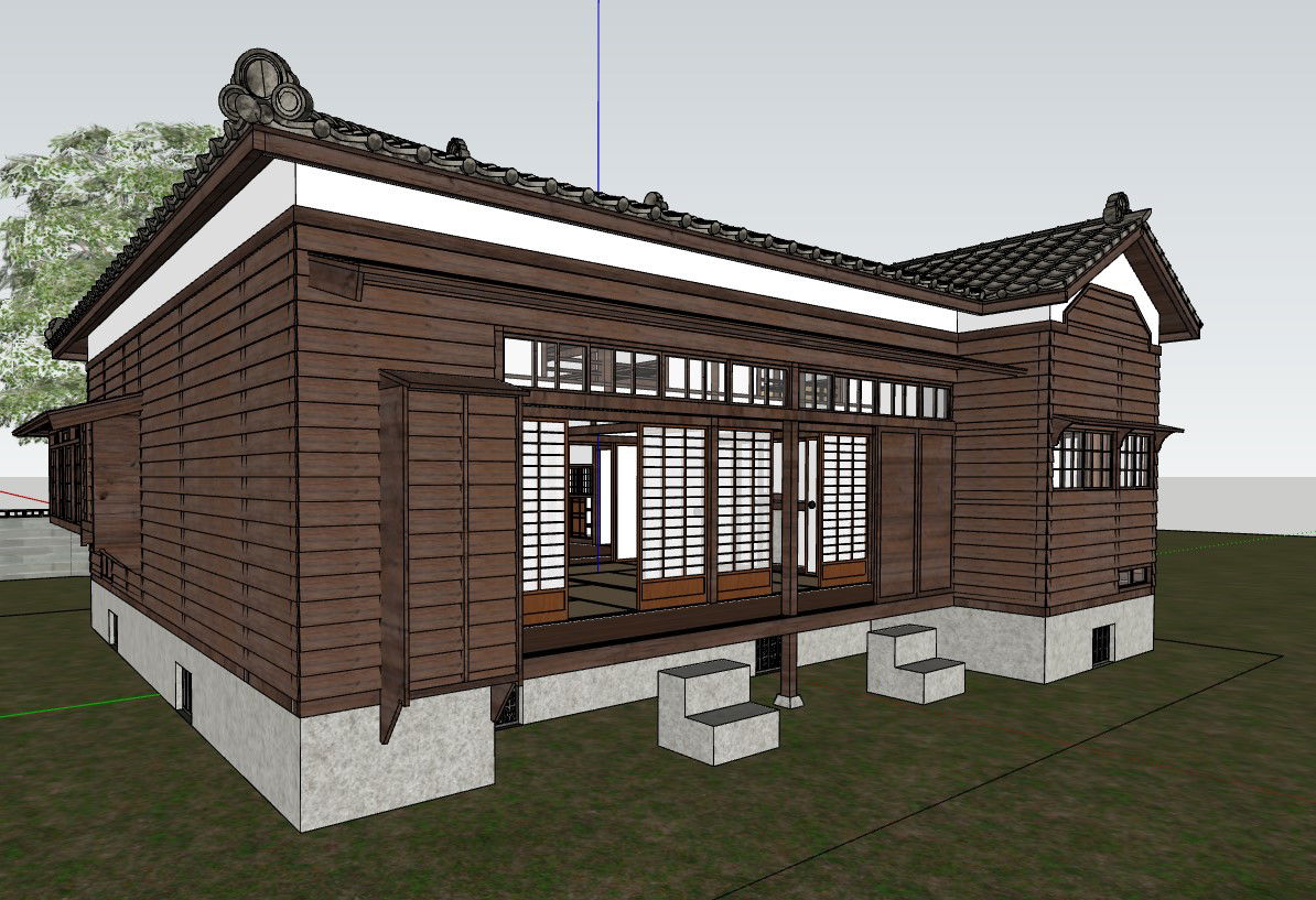 3D Wooden Villa With a bedroom, living room, kitchen, Garden, bathroom, washroom, drawing room, dining room, living room, store room, temple, hut shaped roof and a garden.