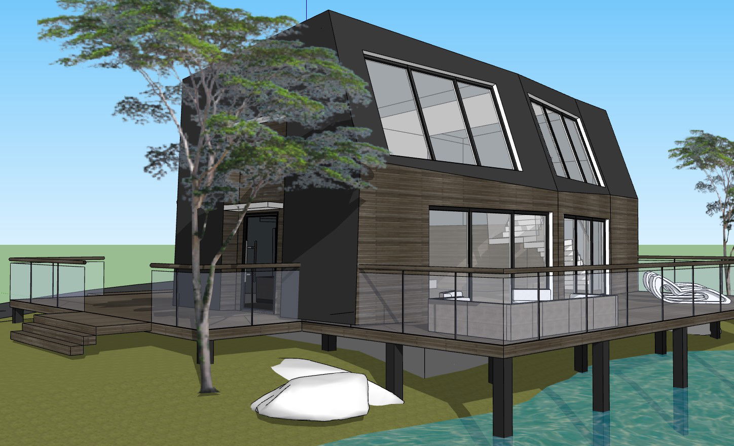 3D Beach Cottage With a bedroom, living room, kitchen, Garden, bathroom, washroom, drawing room, dining room, living room, store room and balcony