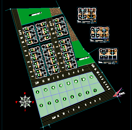Town Planning Row House CAD Drawing with Master Plan and Layout Design