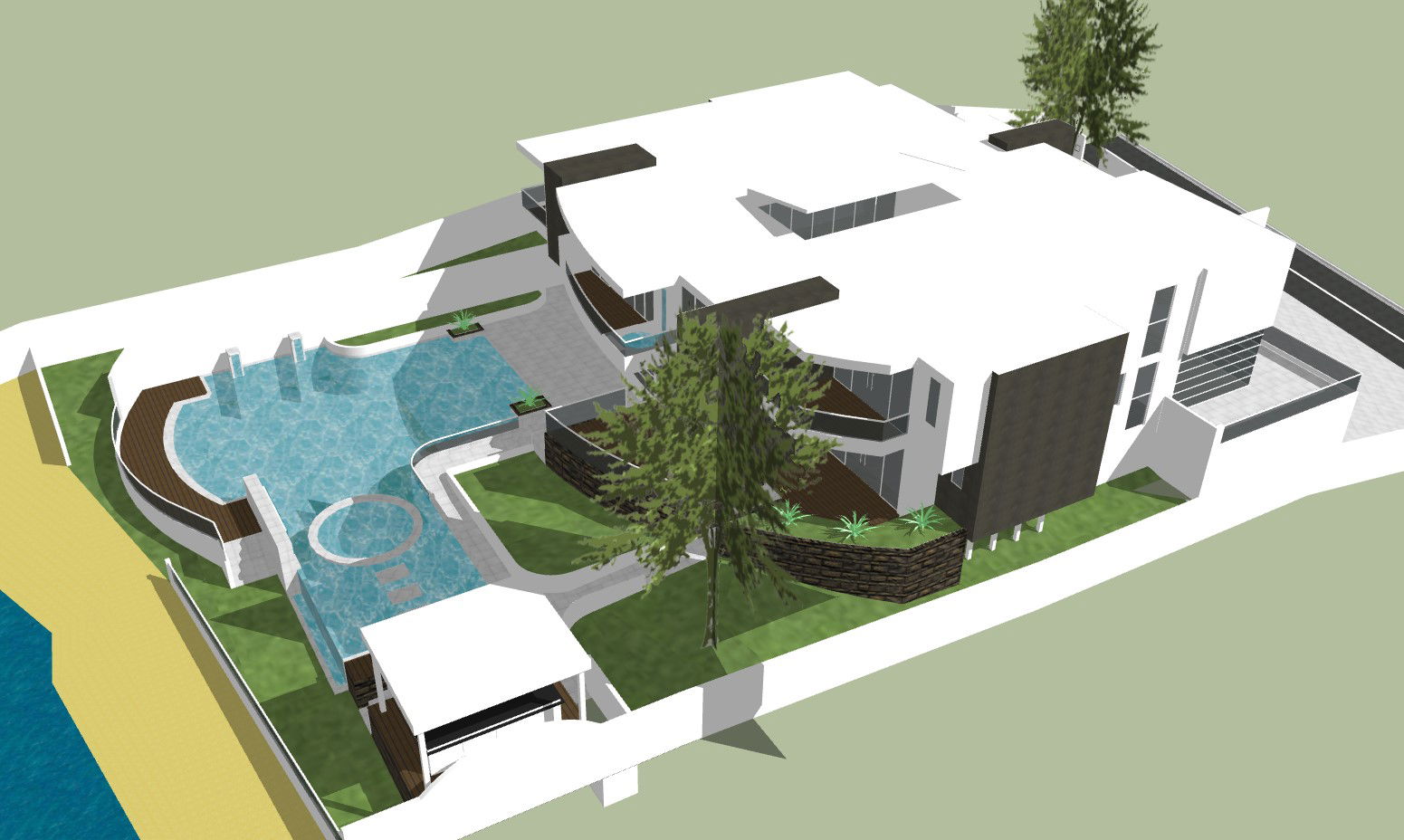 3D Suburb Resort with a swimming pool, parking space, premium room, washrooms, elevators, kitchen, restaurant and garden.