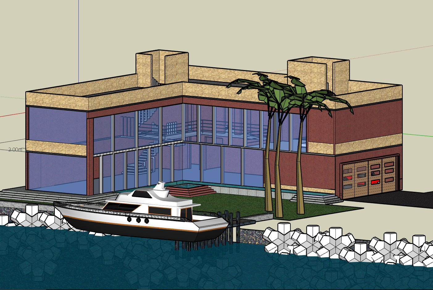 3D Beach Side House with bedroom, living room, kitchen, Garden, bathroom, washroom, drawing room, dining room, living room, store room, temple, terrace and garage.