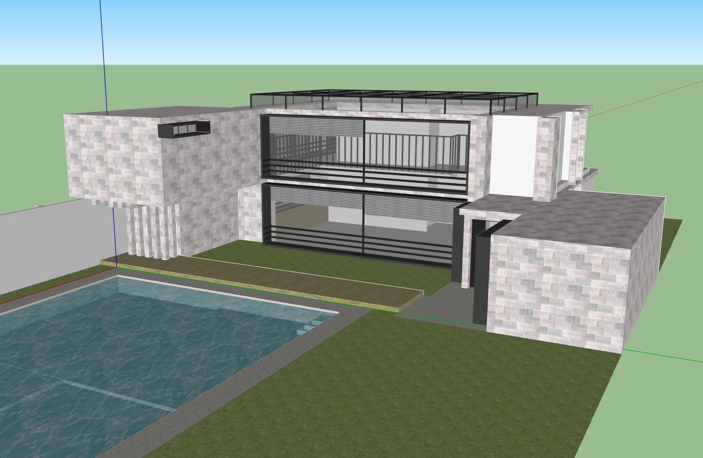 3D Contemporary House With a bedroom, living room, kitchen, Garden, bathroom, washroom, drawing room, dining room, living room, store room, temple and swimming pool.