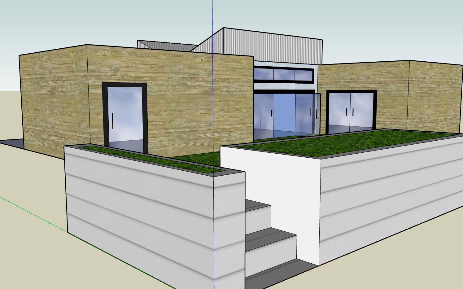 3D Elevated House With a bedroom, drawing room, living room, bathroom, washroom, dining room, kitchen and garden.