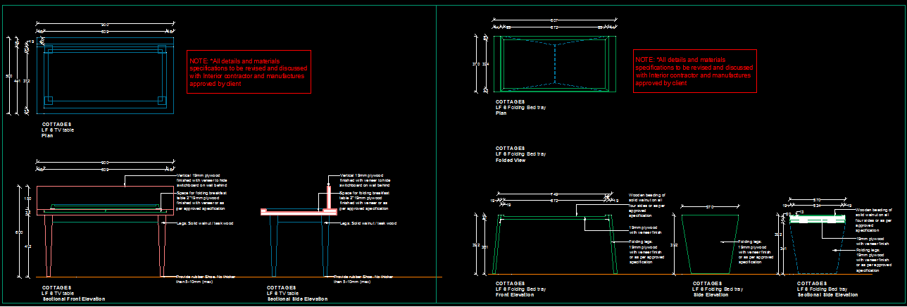 Modern TV Table Design CAD Drawing in 2D for Interior Layout