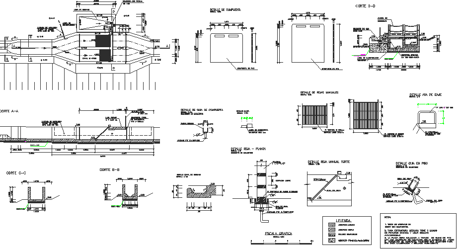 Detail camera of grills drawing with plan, sections with dimensions and their specification with material classification and different sections and details in autocad drawing.