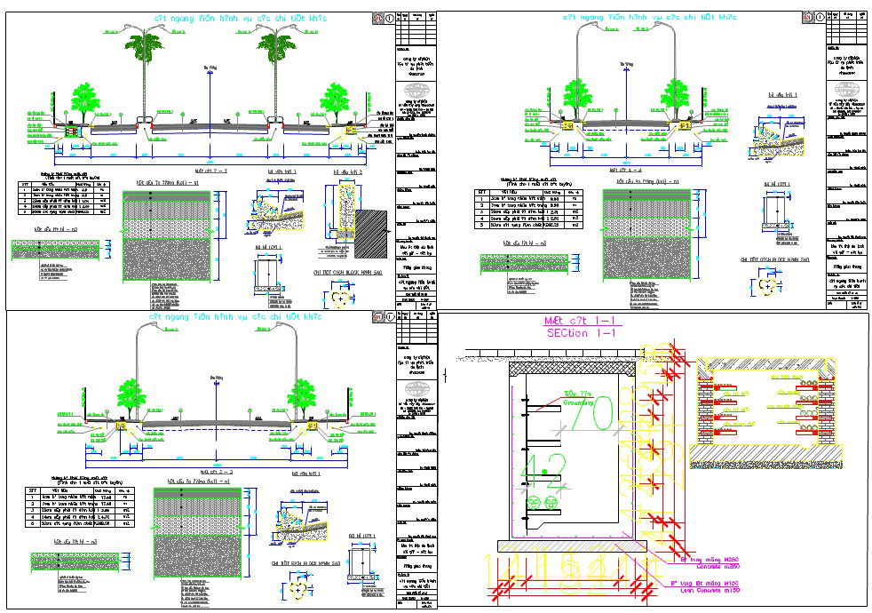 Here is the autocad dwg of sectional view elevation of street road showing street lights and details of road.