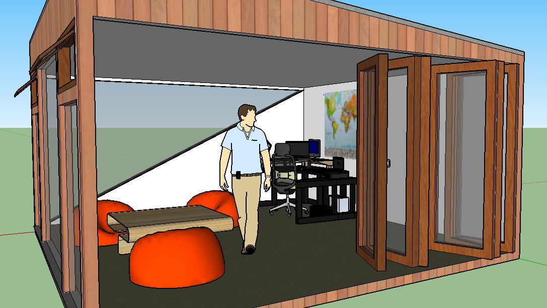 3D Private Office Cum Study Room with stable, bean bags for sitting, computer desk and glassed door
