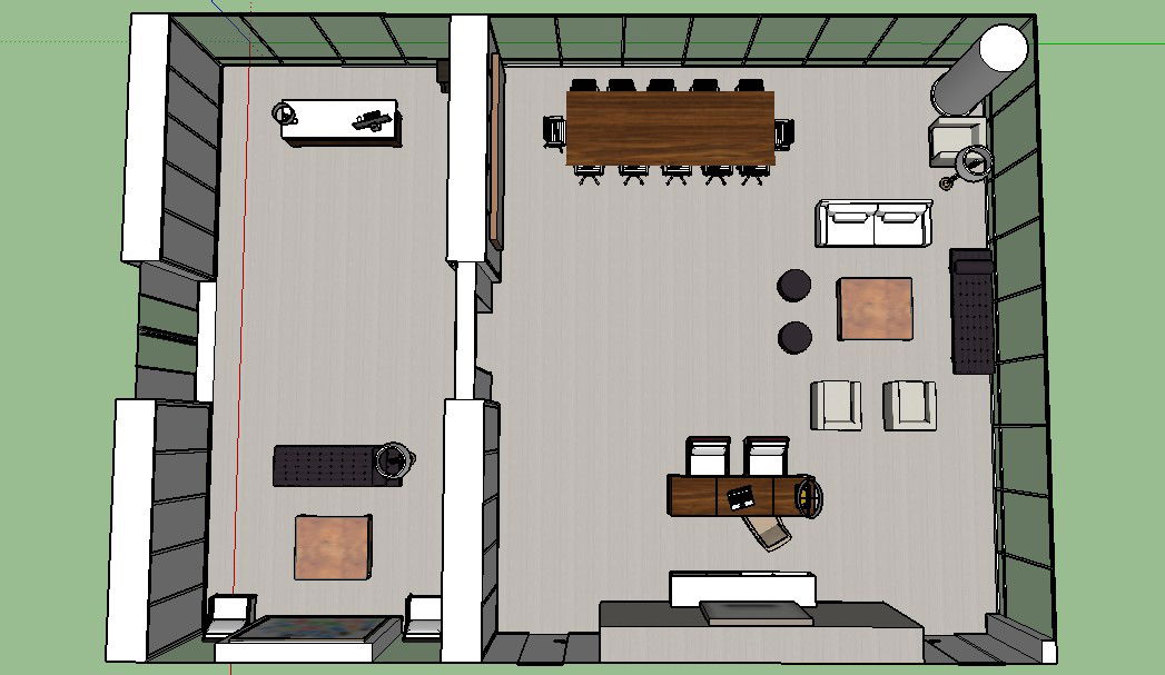 3D Interiors of a office with Conference Table, personal table, sofa set and personal cabin.
