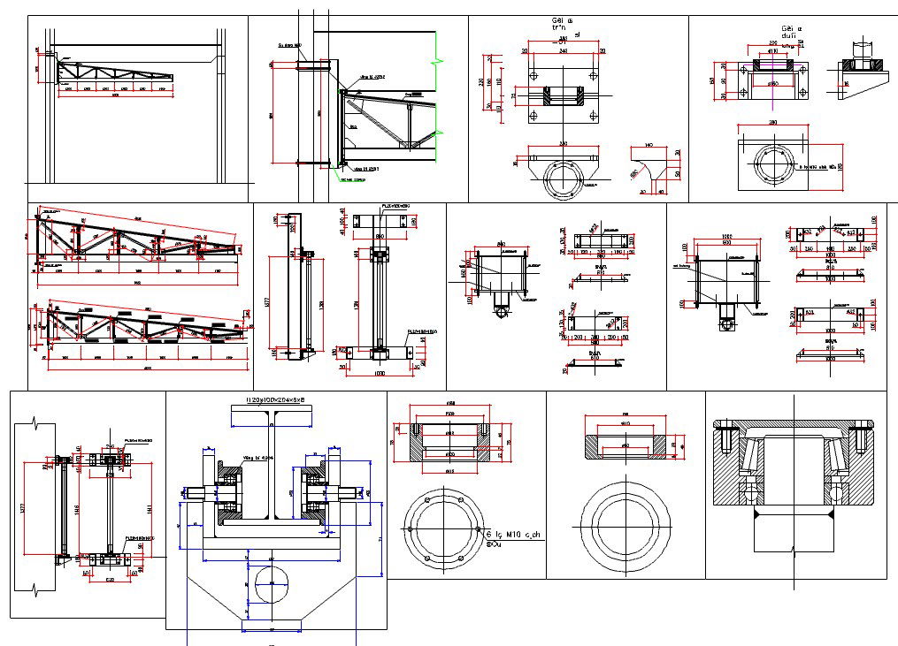 Here is the autocad dwg of detailed plan and elevation of bridge metal trusses used for contruction of bridges.