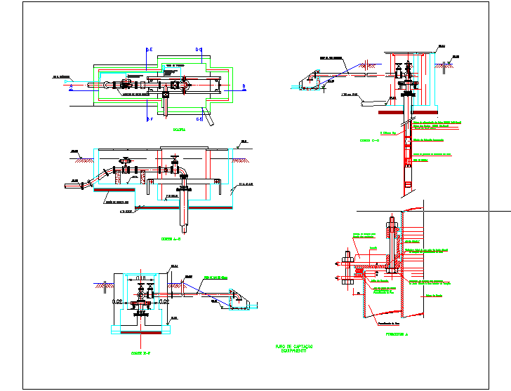 Here is the autocad dwg of perforation of water capture detail of submergible and lining.