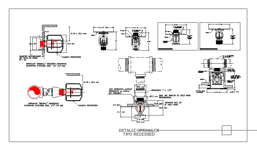 Here is the autocad dwg of detailed sprinklers design and its elevation.