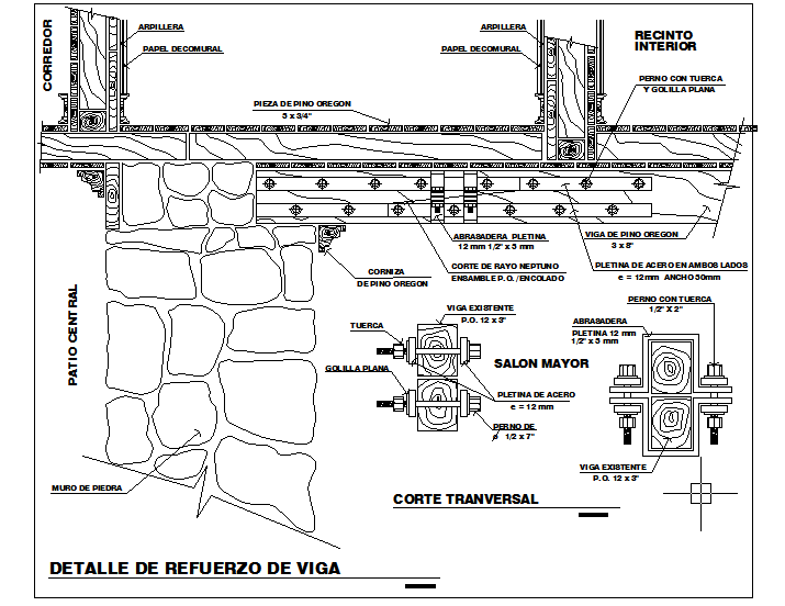 here is the description of details of wooden entre solover stonewall with its transversal details.