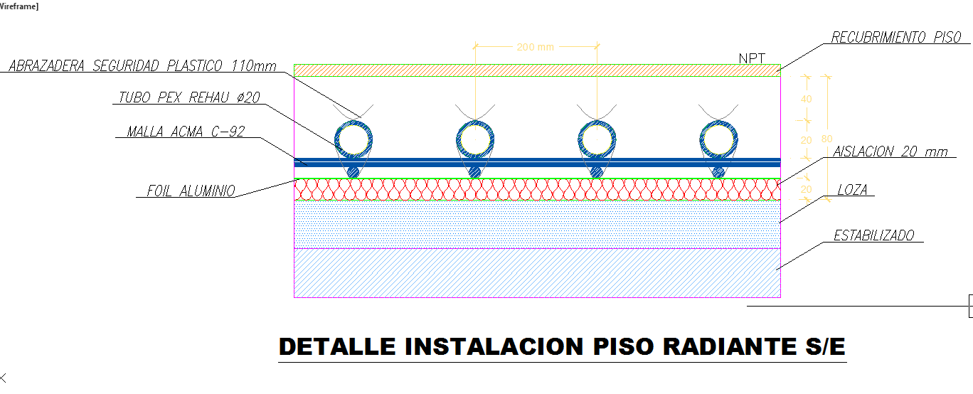 Here is the detailed autocad dwg of radiating floor.In radiant setup,the warmth is supplied by hot water tubes or electric wires buried underneath the floor.