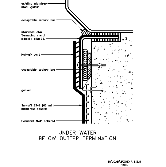here is the description of Pools membrane placement details with superior border. underwater below gutter termination.