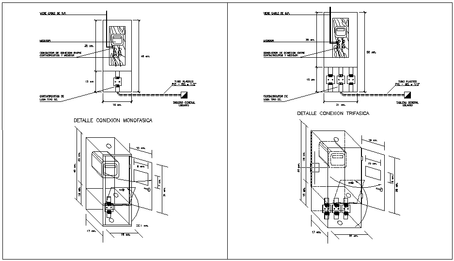 Here is the description for Details of mono phasics and three phasic meters with their plan , elevations and details .