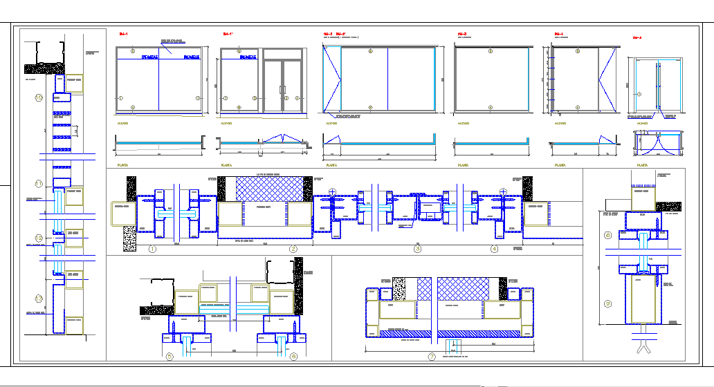 Here is the detailed autcad dwg of details of steel and glass openings with proper detail elevations.