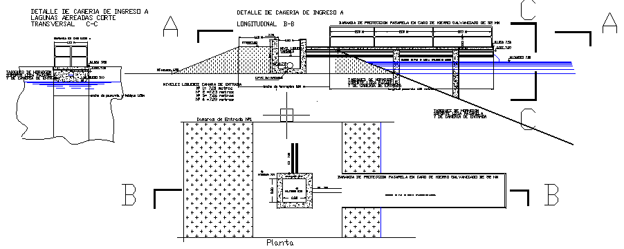 Here is the description about details of Camera to entrance to lagoon supported with its plan and elevations .