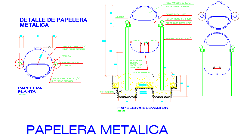Here is the description for details of basket of garbage with its plan and elevation . It is a a standing basket for wastepaper, small items of trash, etc.