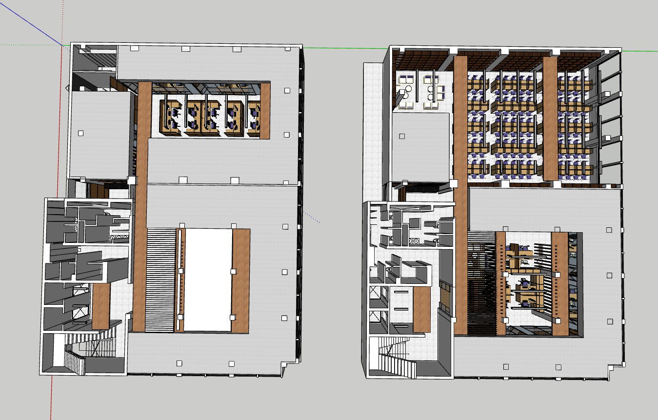 3D Interiors of a Office with air conditioned cabins, elevators and basement parking, garden, cafeteria, washroom, reception, security room and separate smoking zone.