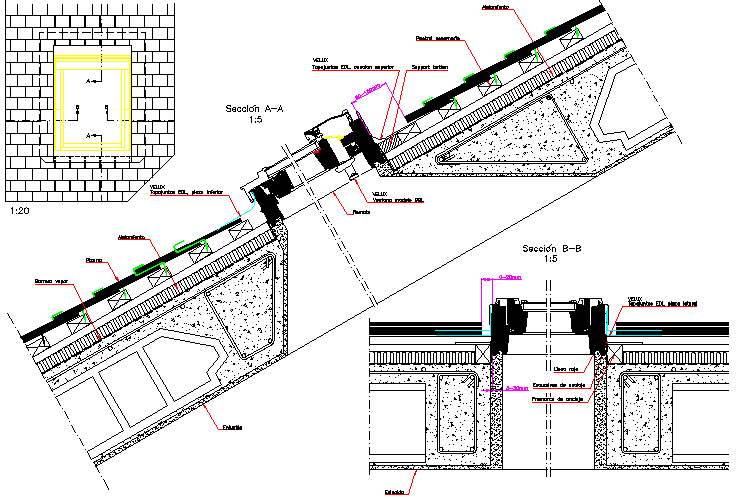Here is the autocad dwg file for details of window on inclined roof . A roof window is an outward opening window that is incorporated as part of the design of a roof.